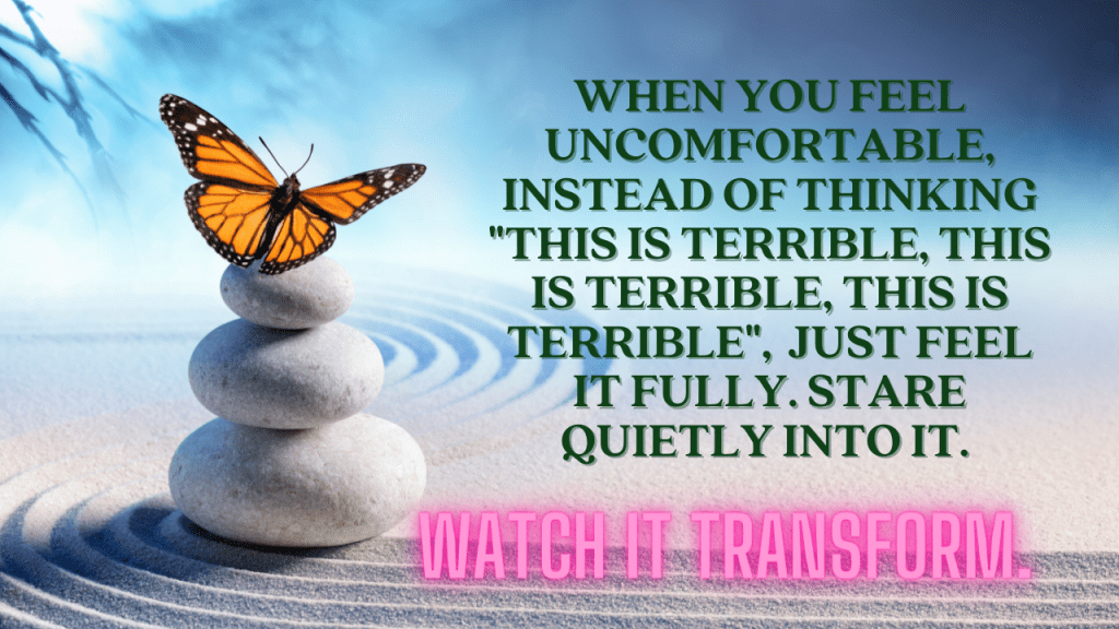 This is not a mental thing; be sure not to get sucked into thoughts or “stories” of why you are feeling this emotion; be the observer. Often our thoughts, stories, judgements, and beliefs will only prolong our suffering and keep us from just feeling. Simply feel the emotion as it moves through you so that you can transform it. The deeper the emotion, the greater release. Even if the emotion is extremely intense, it won’t kill you. It only needs to be felt fully to be transformed fully. This is a natural process when you allow this energy to be felt-there is no need to force or do anything else.
